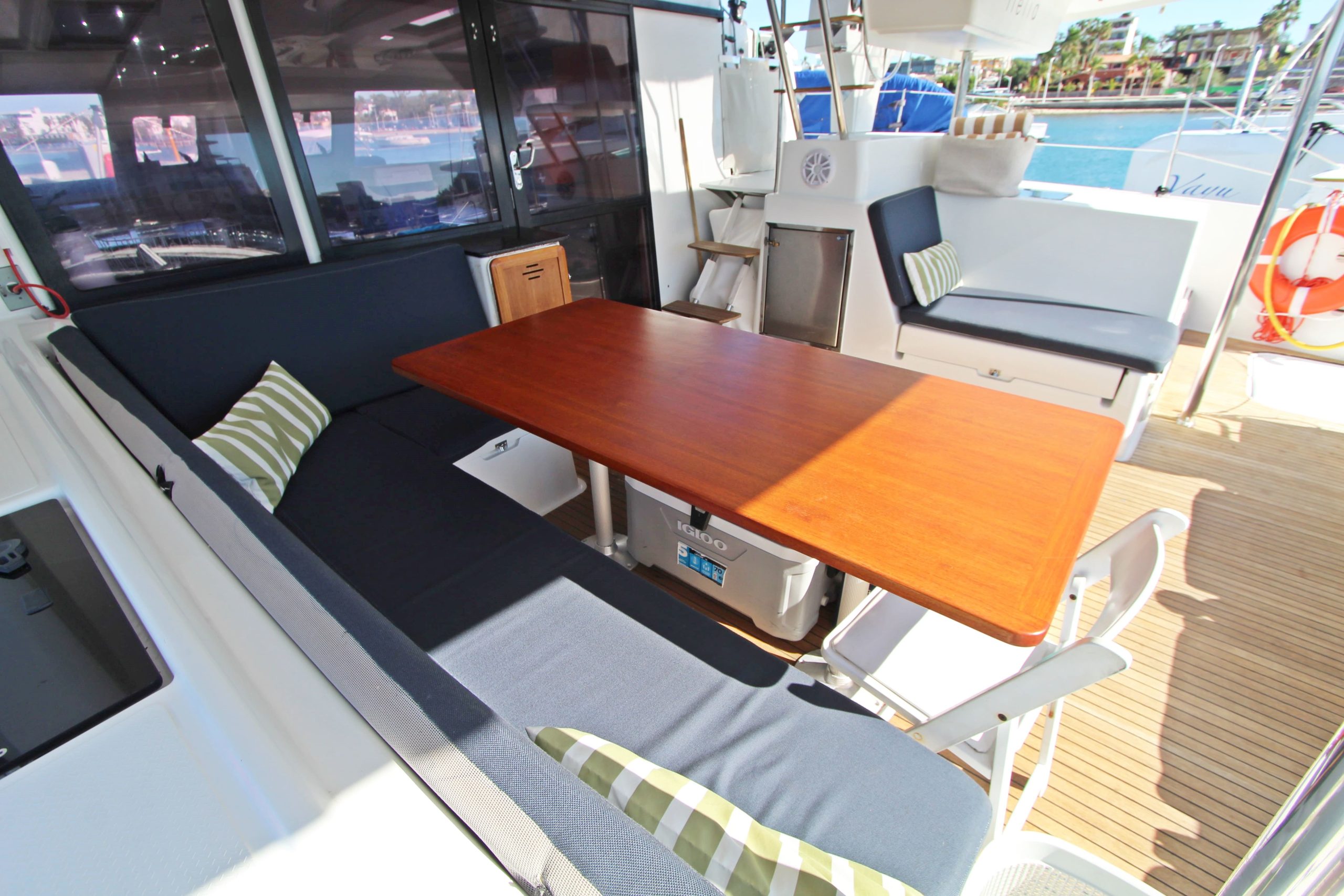 Clever internal design creates a very liveable space on the Fountaine Pajot Helia 44 with the lounge forward, alongside the spacious chart table, that allows a little business during a pleasure trip, the saloon table can be adjusted into berth via adjustable table legs.