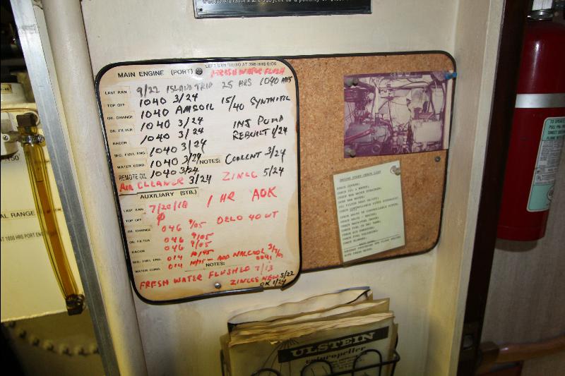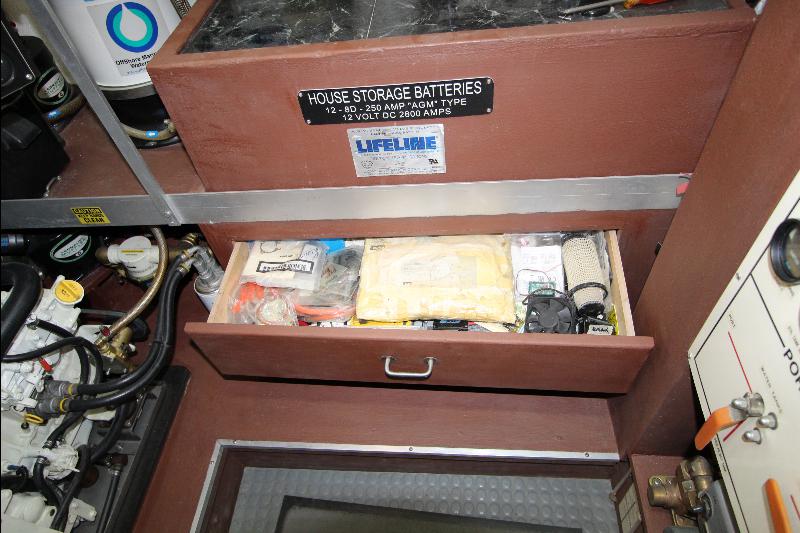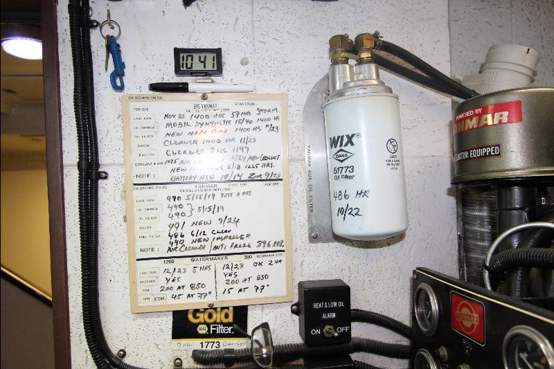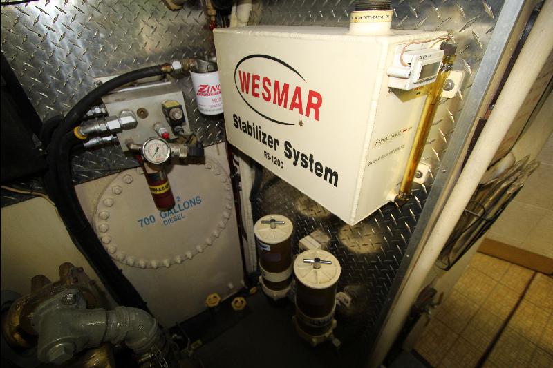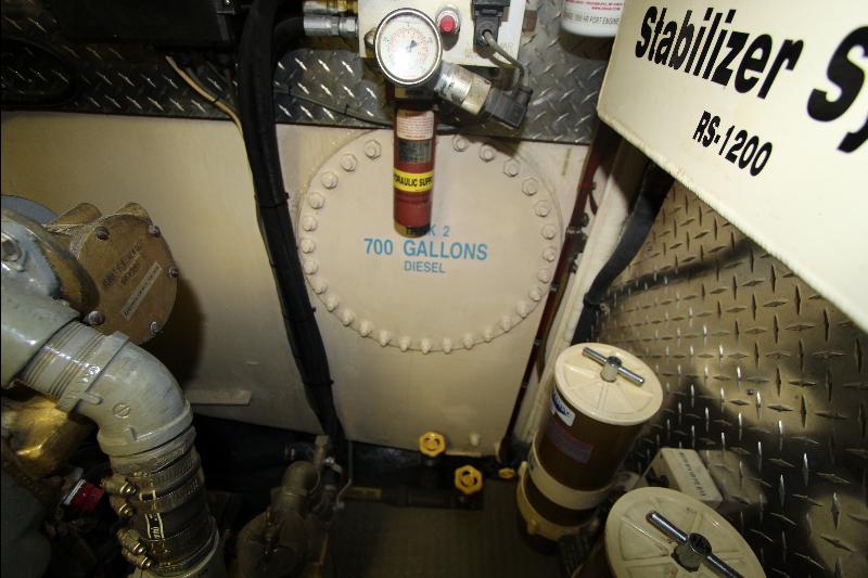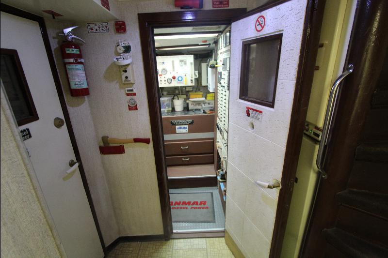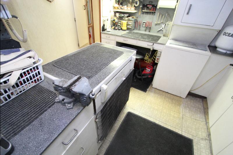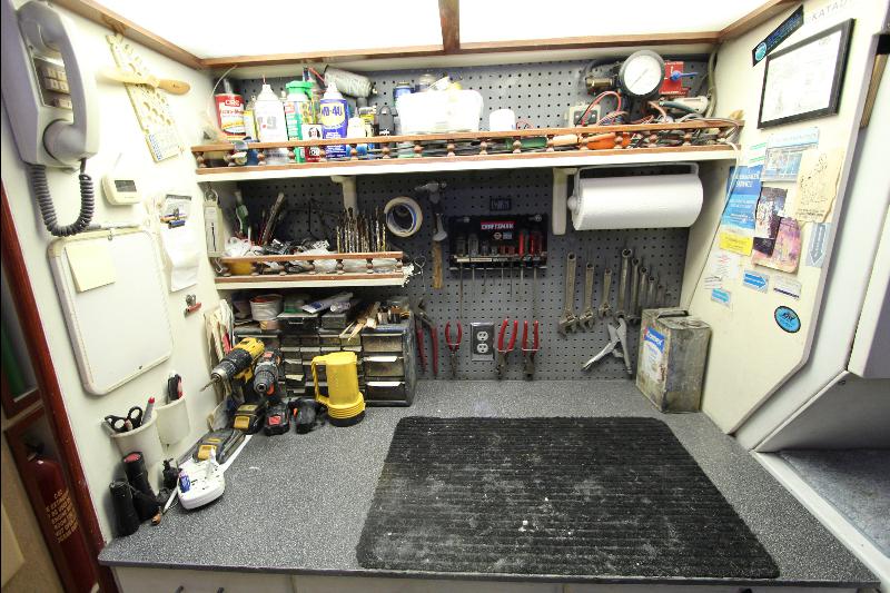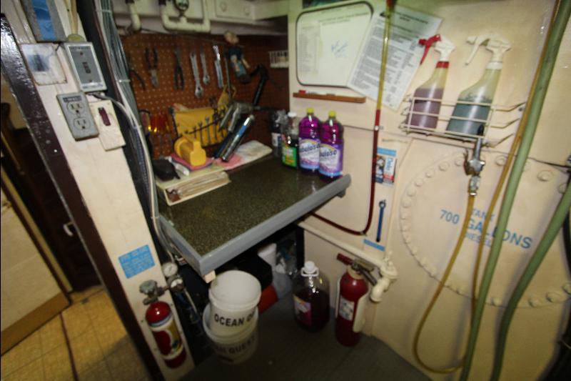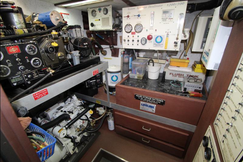 There is a separate generator room with electrical panels and other equipment, forward of the generator room is a complete separate work shop fully equipped the bilges were found clean and tidy (no oil/water), all equipment is meticulously maintained and labeled with many back up systems. The fuel filtering system has double fuel filters and vacuum gages and an additional day tank with a fuel polishing system.
